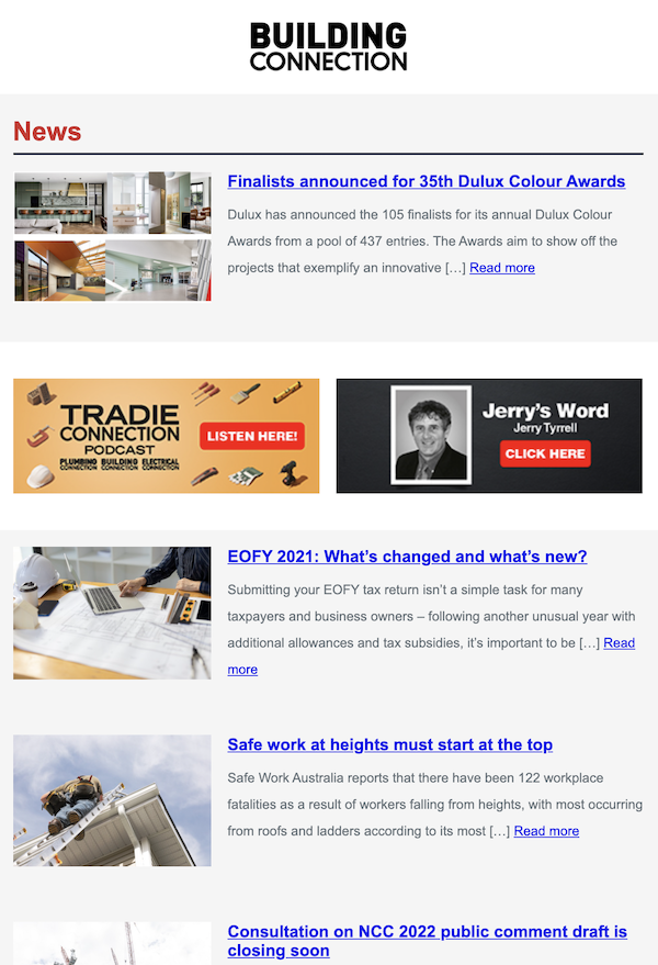 The Building Connection newsletter is delivered to your inbox fortnightly.